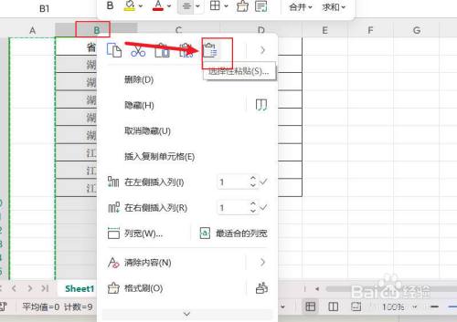右击B列标题,弹出菜单中选择【选择性粘贴】。