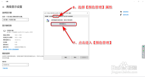 在颜色办理框中选择【高级】选项,点击进入【校准显示器】。