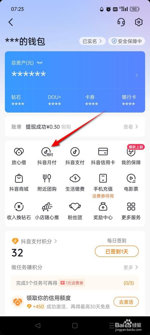 打开抖音"我"的页面,点击右上角的三横图标进入。