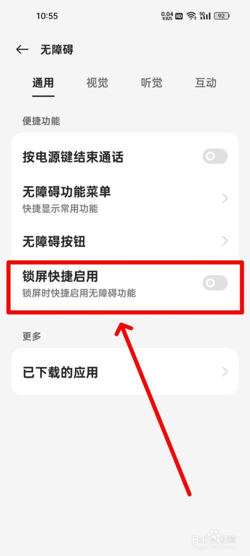 六,将"锁屏快捷启用"右边的开关打开即可。