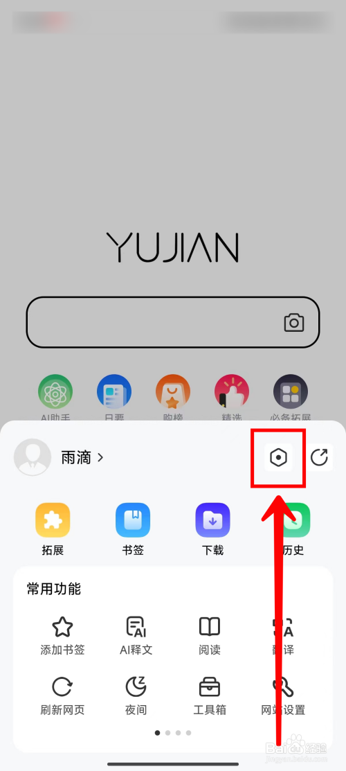 打开雨见浏览器APP,点击左下角的【菜单】图标。