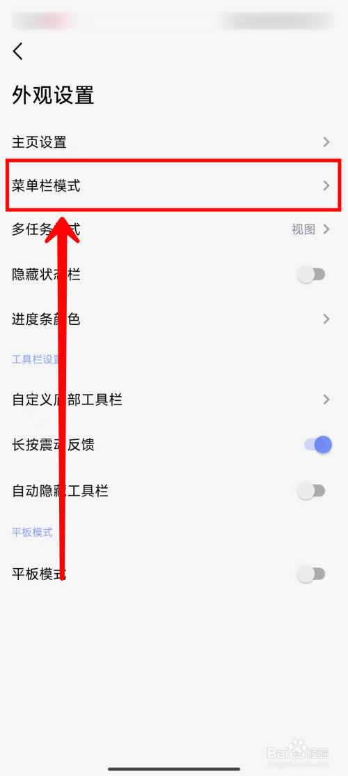 进入外不雅设置页面后,点击【菜单栏模式】选项。