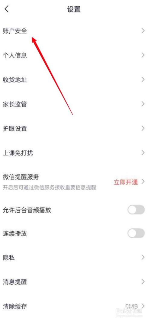进入到设置菜单栏中,点击账户安全选项。