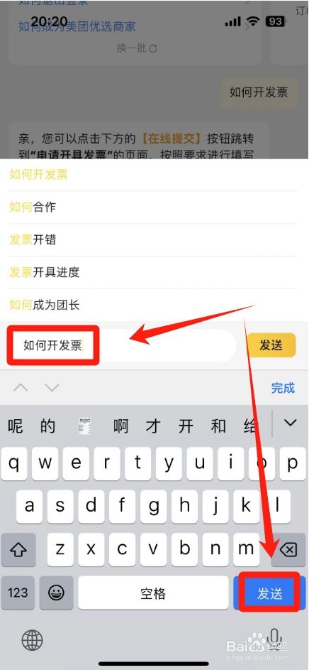 进入对话框页面,输入在哪里开发票,点击【发送】。
