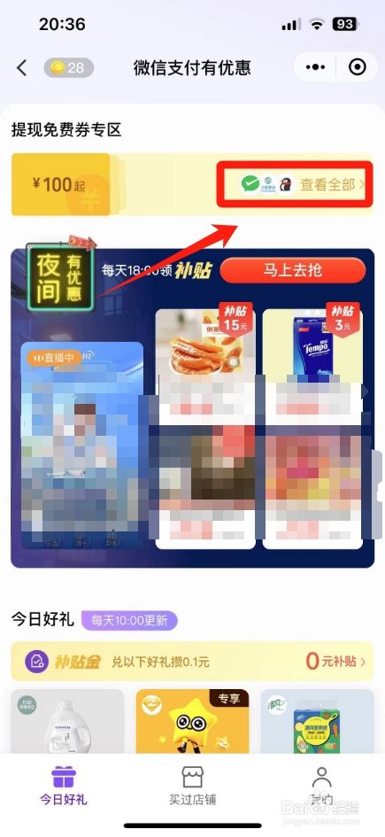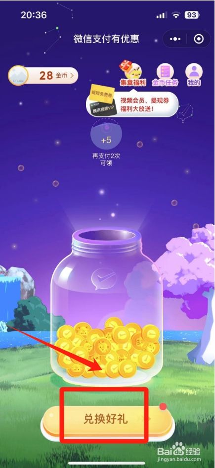 进入支付有优惠界面,点击"兑换好礼"。