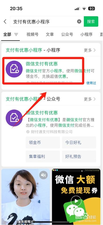 进入搜刮成果界面,点击"支付有优惠小程序"。