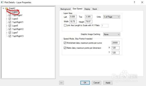 然后继续在该对话框中选择右侧的size/speed标签,下面在layer area的units项目下选择为长度单元而不是page%,好比选择工程上常用的mm或者cm。然后点击apply。如下图: