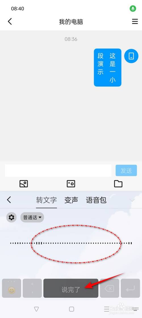 按住措辞,说完后,点击"说完了"即可主动将语音转换为文字了。