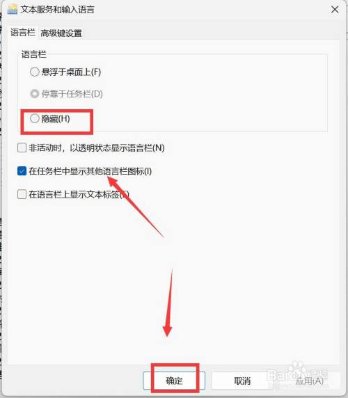进入文本办事和输入语言,勾选【隐蔽】页面,点击【确定】。