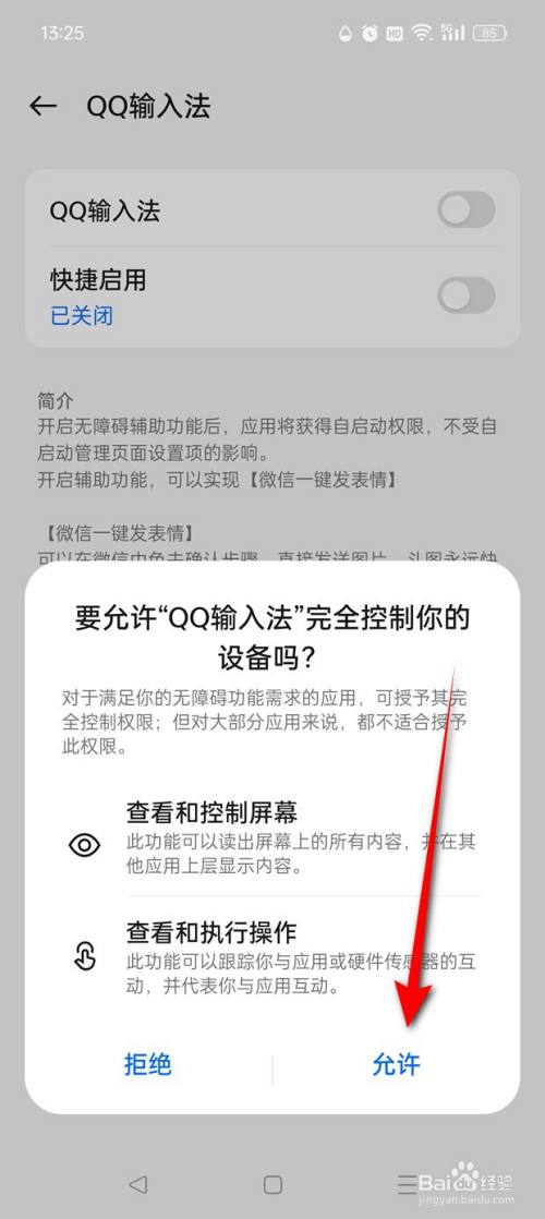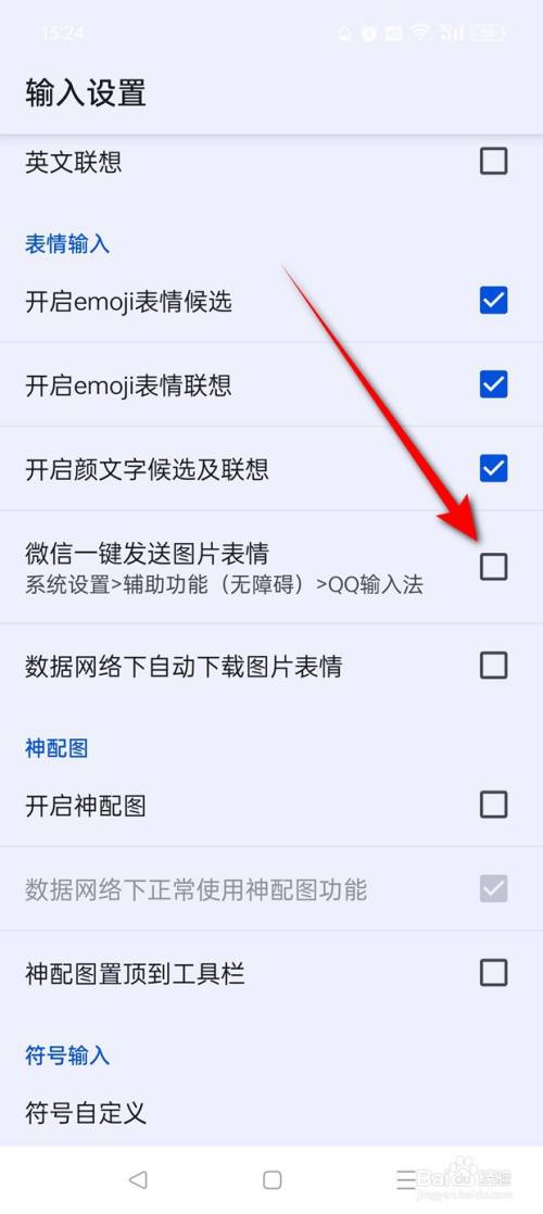 将"QQ输入法"旁的小滑块点亮即可启用微信一键发送图片心情功效了。