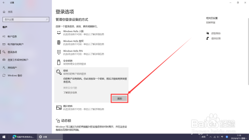 - 4、接着选择【登录选项】,在右侧点击【密码】。