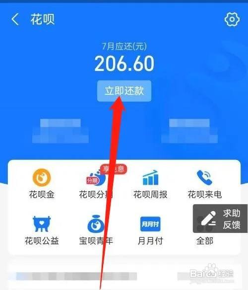 第三步、进入花呗界面后,点击当即还条目