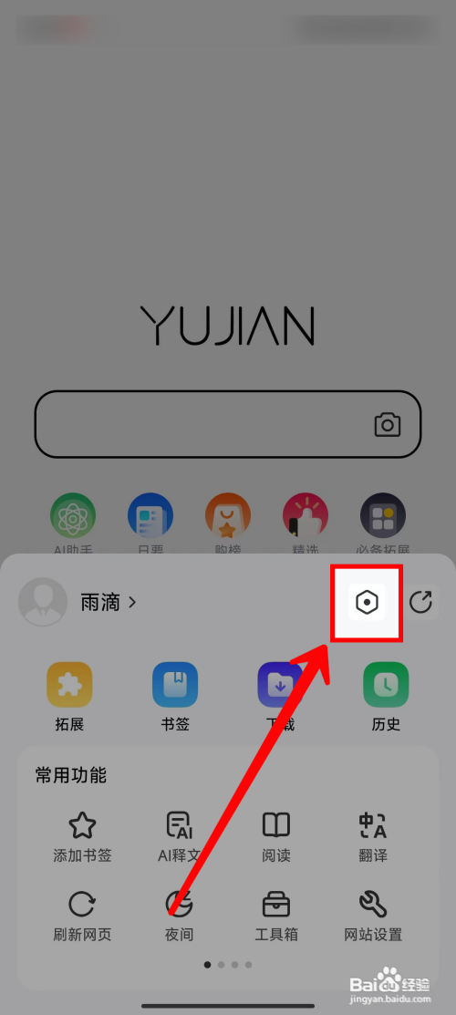 打开雨见浏览器APP,点击左下角的【功效】图标。