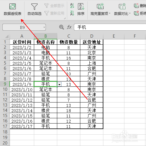 在《数据》选项卡的左侧有一个《数据透视表》选项,单击它。