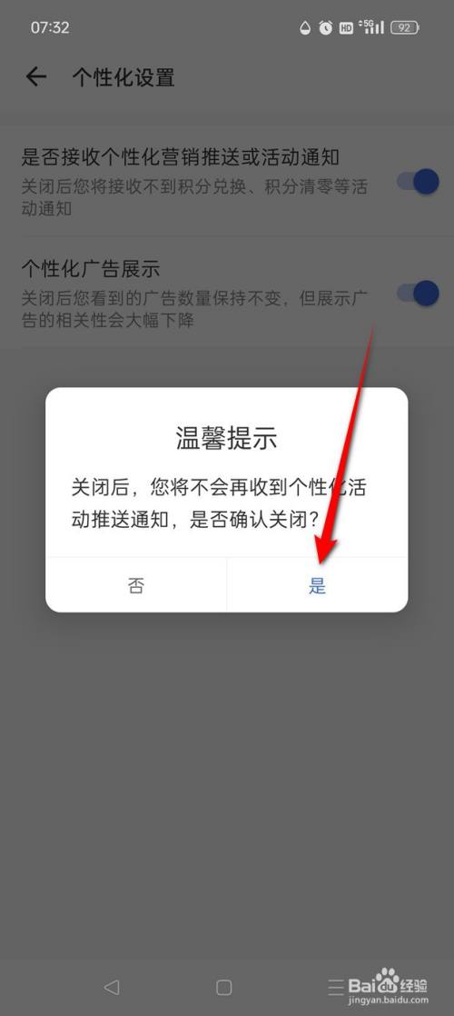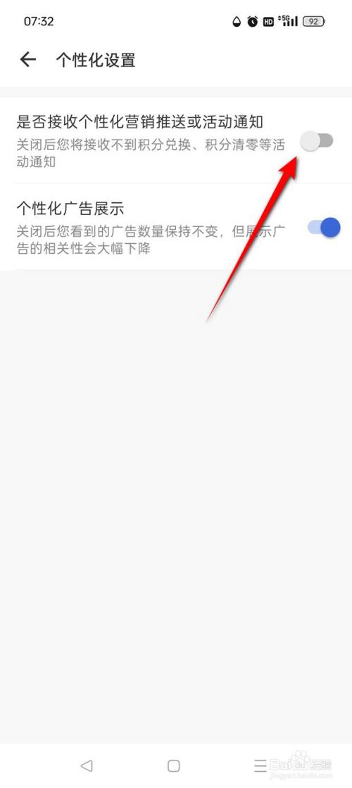 将"是否吸收个性化营销推送或运动通知"旁的小滑块点暗即可封闭吸收。