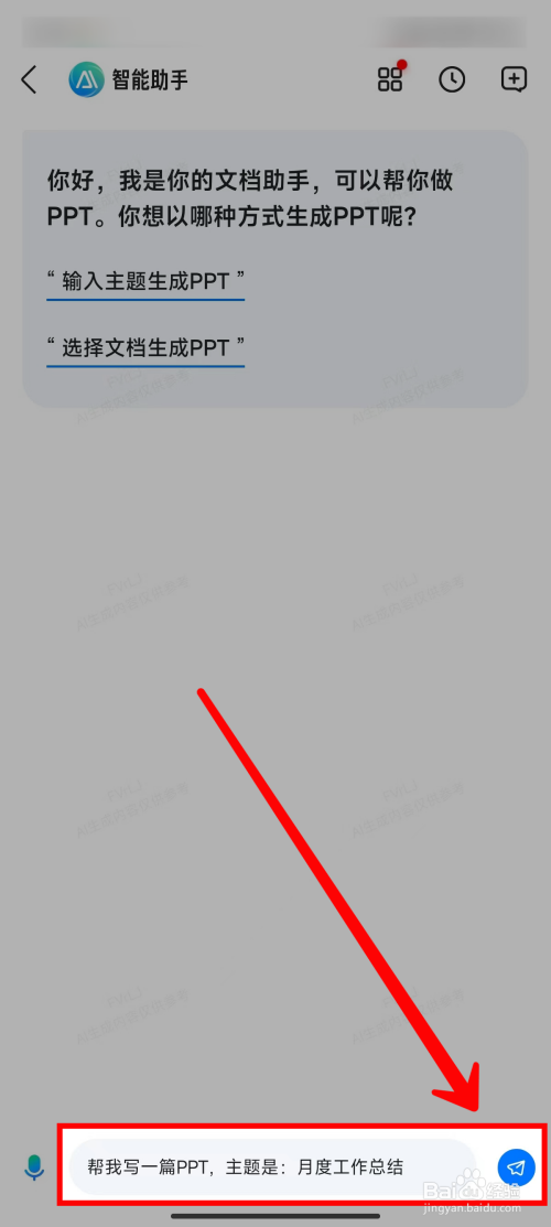 进入智能助手页面,选择【输入主题天生PPT】。