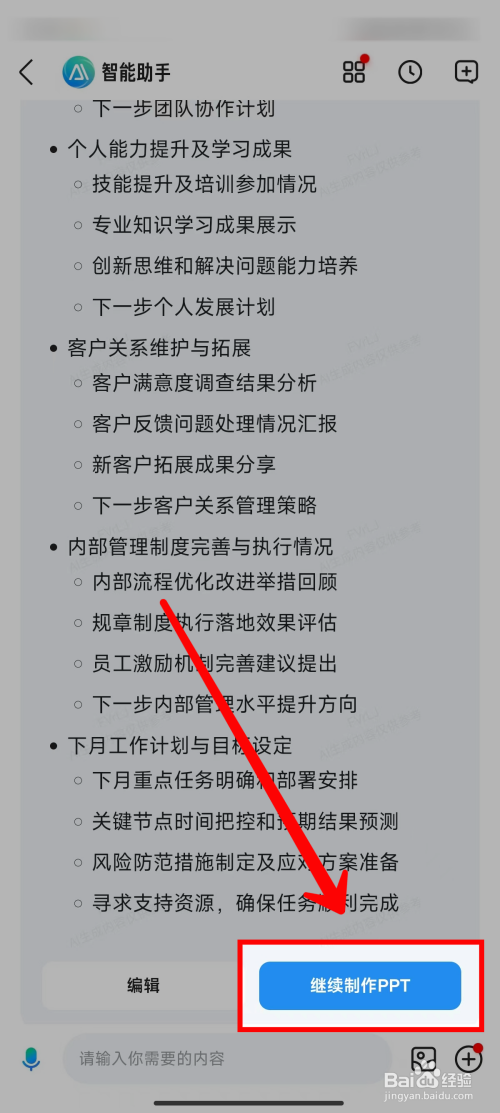 智能助手起头创作PPT纲领,完当作后点击【继续建造PPT】。