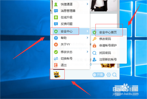 登岸本身的YY账号之后,我们找到右下角的体系菜单按钮,点击【安全中间】-【安全中间首页】。