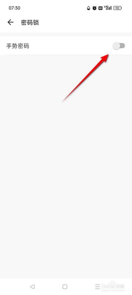 当"手势密码"旁的小滑块处于点暗状况时即暗示此时未启用手势密码锁功效,此时点击小滑块。