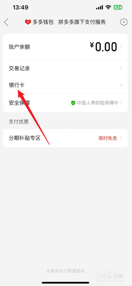 进入到冷互总多多钱包界面,点击"银行卡"。