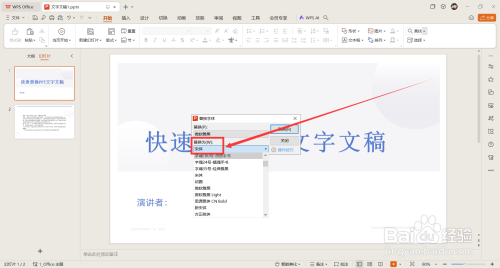 以下图中的PPT为例,我们将此PPT的微软雅黑字体替代为宋体。