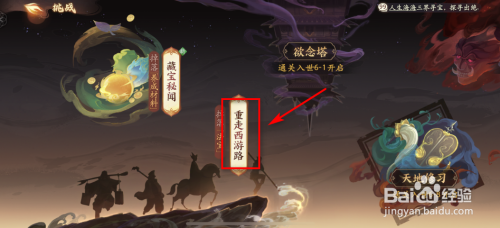 进入到【挑战】页面后再点击【重走西游路】功效。