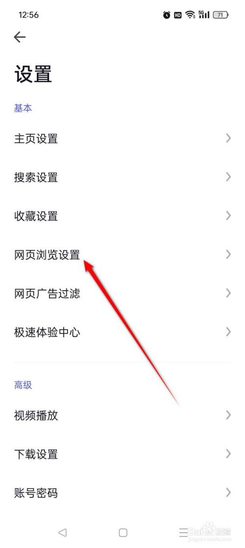 点击"网页浏览设置"。