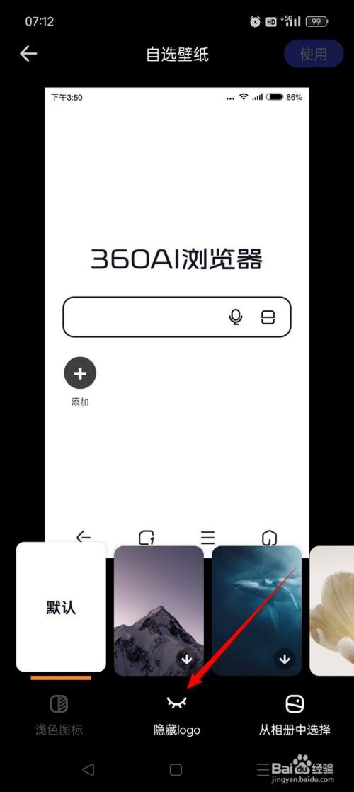 当展示为"隐蔽logo"图标时暗示会在主页展示logo,此时点击图标可以隐蔽logo。