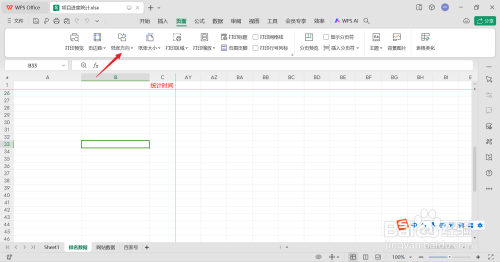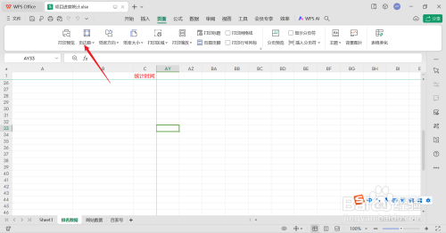 打开要打印的表格后,点击"页面"。