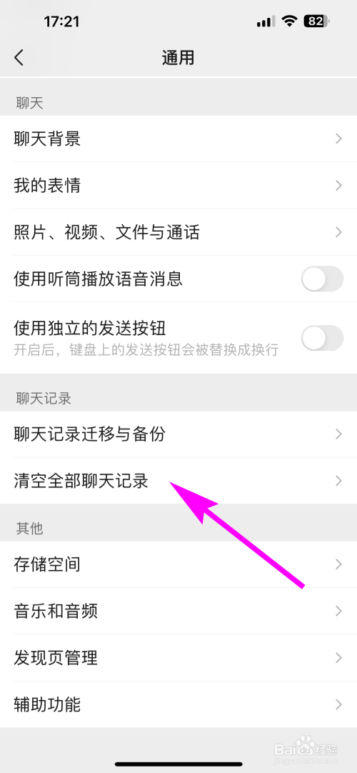 点击清空谈天记载即可。
