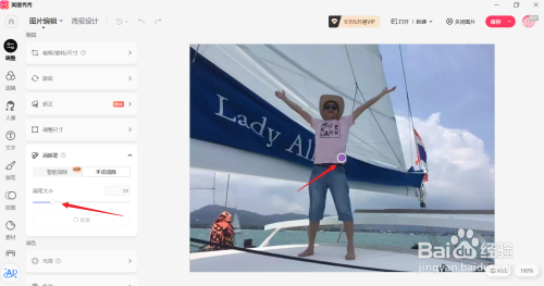 进入到消弭笔下拉界面,设置画笔巨细,涂抹在去除水印的位置。