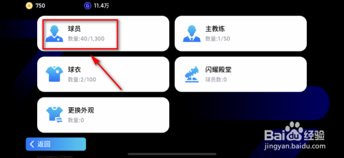 再点击弹出页面中的【球员】功效。