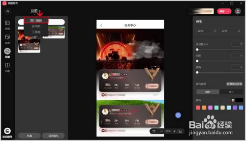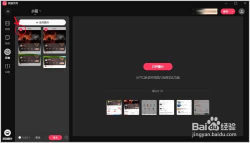 点左上角如图位置的"拼图-图片编纂",生存已经做好的拼接长图,打开编纂页面举行其他操作。