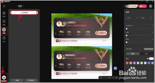 点击"添加图片"添加拼接的图片,点图片左上角的圆圈能删除图片,单击图片即可放到右侧编纂页面。