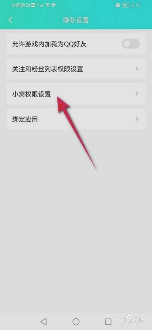 第六步:之后,点击小窝权限设置进入。