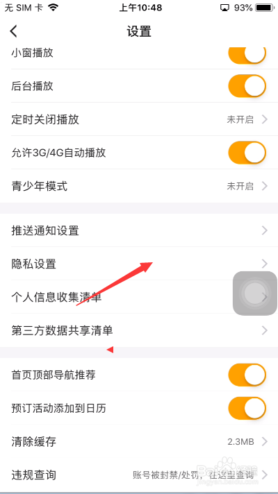 然后点击【隐私设置】选项