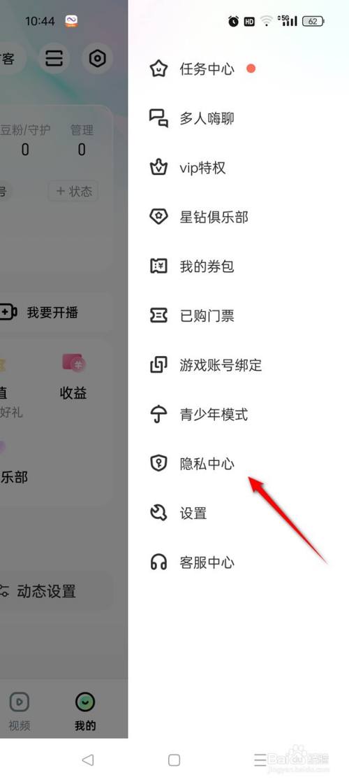打开酷狗直播"我的"页面,点击右上角的小齿轮图标进入。