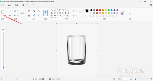 进入到绘图软件后,点击"选择上偏向下箭头"。