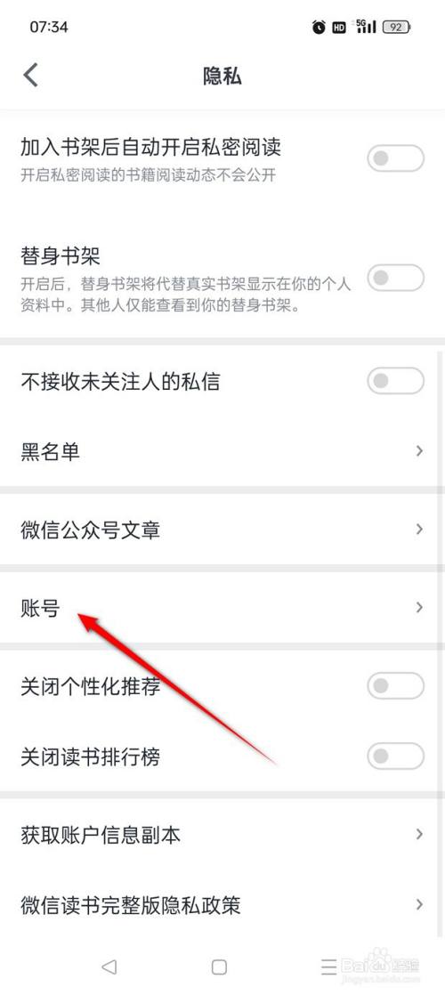 点击"账号"。