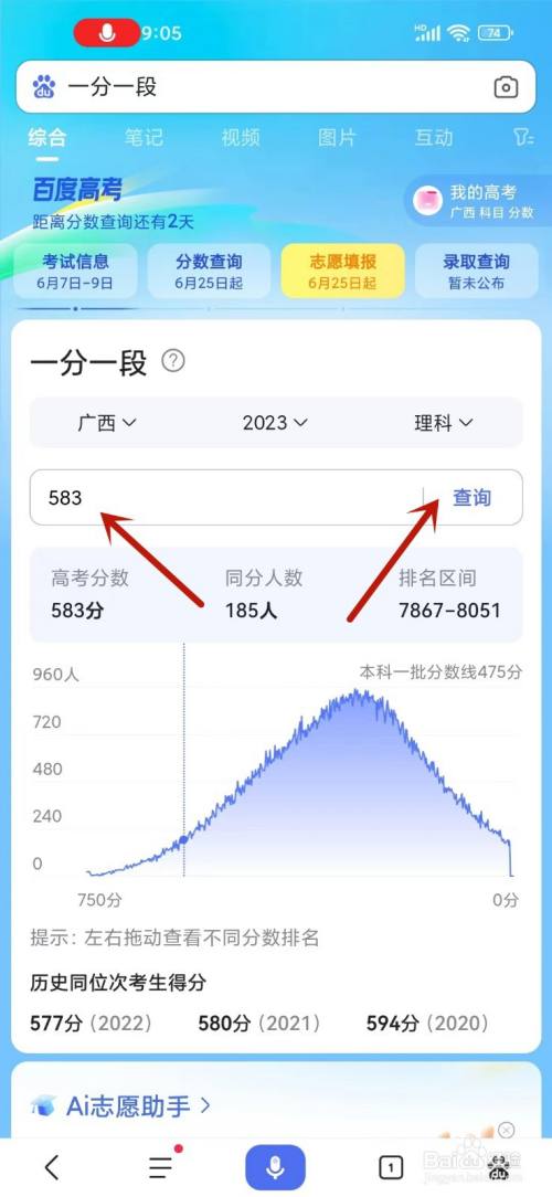 打开手机微信,进入一分一段办事页面,输入输入高考分数即可查询排名。