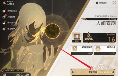工具/原料苹果15iOS16.1崩坏星穹铁道2.3.1方法/步骤1进入游戏界面,点击星际和平指南2弹出星际和平指南,点击差分宇宙3进入差分宇宙界面,点击起头游戏4来到模式选择界面,点击位面饰品提取5进入位面饰品提取界面,点击永恒喜剧6在永恒喜剧界面,点击起头挑战7完当作挑战,即可得到流萤位面饰品END