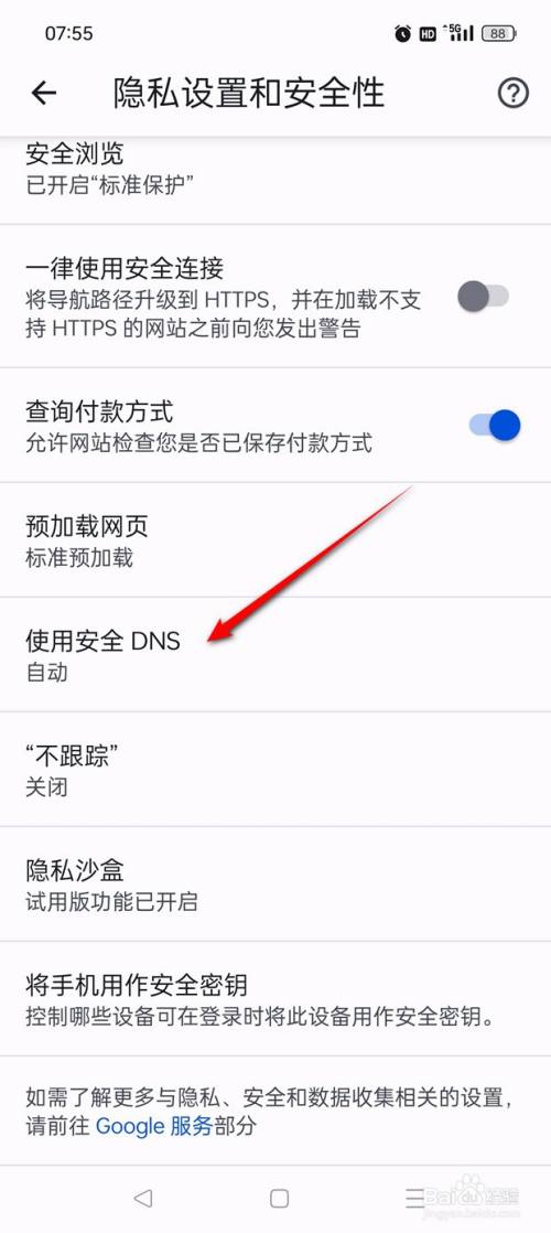 将"利用安全DNS"旁的小滑块点暗即可禁用利用。
