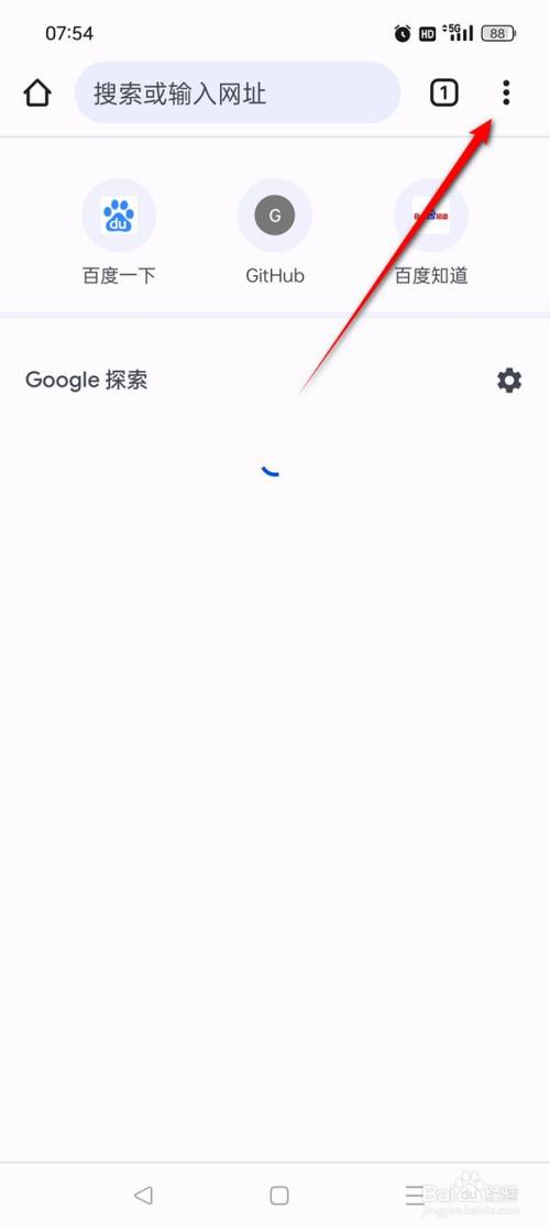 打开Chrome,点击右上角的竖三点图标进入。