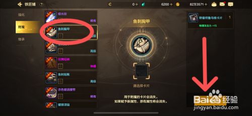 工具/原料iPhone13iOS17.5.1DNF手游102.7.1方法/步骤1先打开游戏进入主界面,点击下面的【打造】2如下,在打造中点击【强化】3如下进入列表后,在附魔中选摘要合当作的鱼刺胸甲并点击合当作卡片4如下,点击【合当作】选项5如下,在弹窗中点击【确认】即可合当作鱼刺胸甲卡片6如下,下面就是合当作成果了END