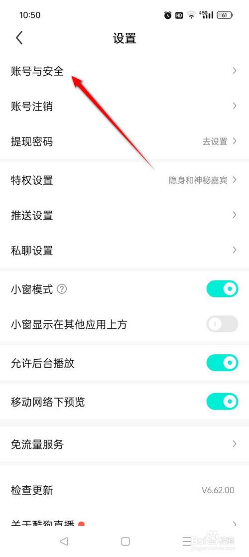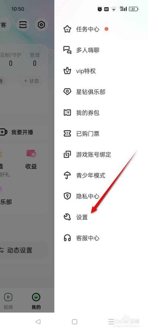 打开酷狗直播"我的"页面,点击右上角的小齿轮图标进入。