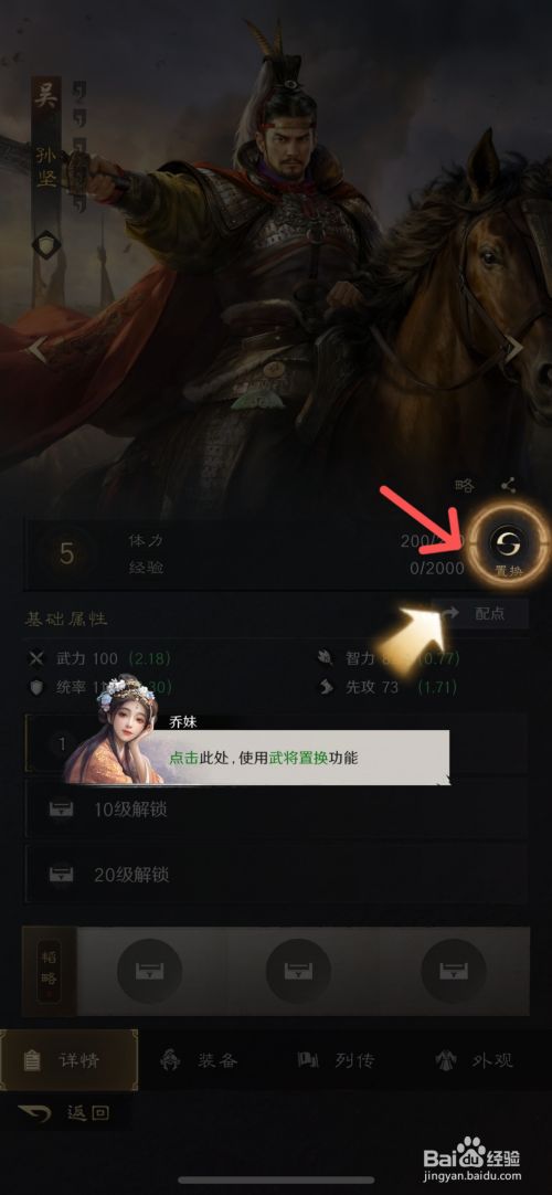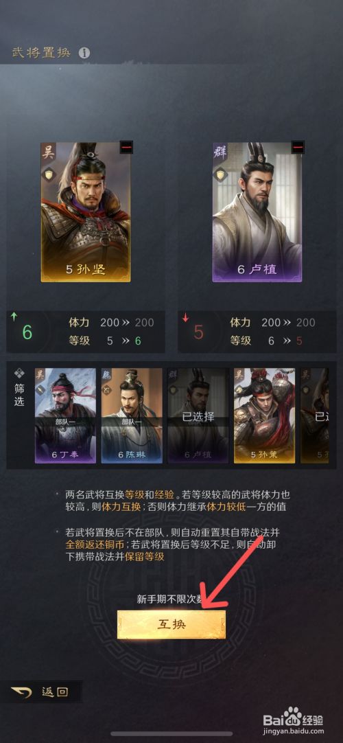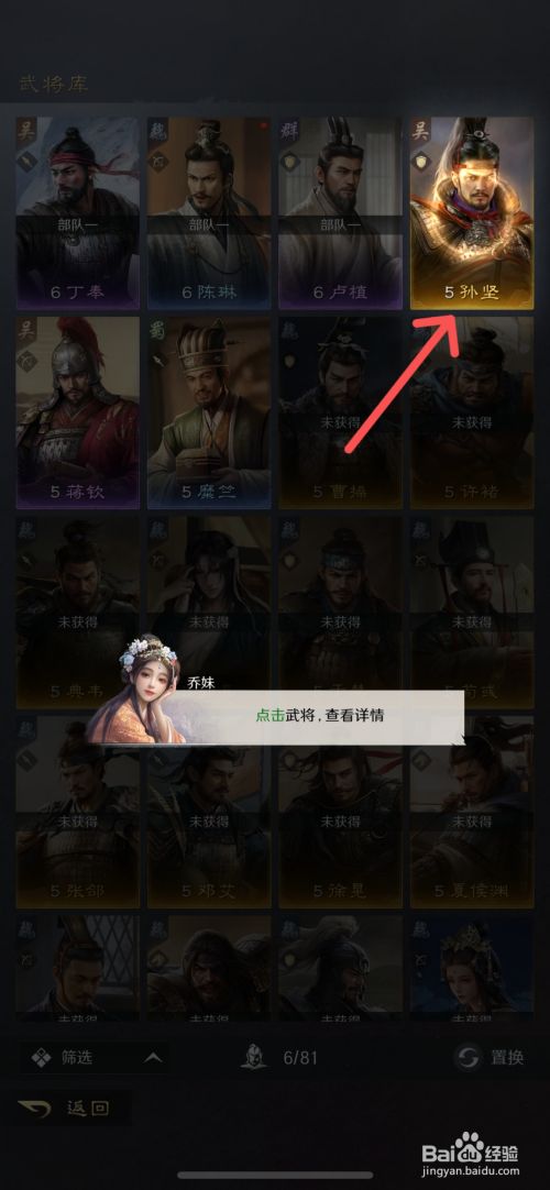 工具/原料iPhone13iOS17.5.1三国:谋定全国1.5.2方法/步骤1先打开游戏进入主界面,点击左下角的【武将】2如下,选摘要置换的【武将】3接着,点击下面的【置换】功效4如下,从下方武将列表中,点击需要置换的武将,或拖动其至上方空位5如下,点击下面的【交换】功效6最后,在提醒中,点击【确定】即可将武将置换了END