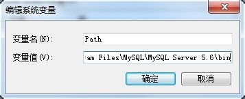 选择PATH,在其后面添加: 您的mysql bin文件夹的路径 (如:C:\Program Files\MySQL\MySQL Server 5.6\bin )