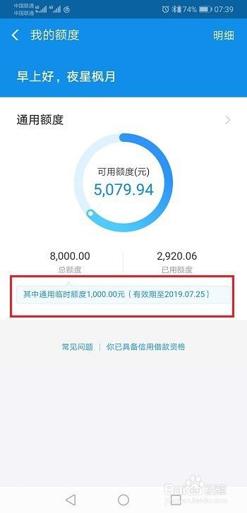 第五步在我的额度中,可以看到餍足前提,有1000元的通用姑且额度,点击领取就领取乐成了,如下图所示: