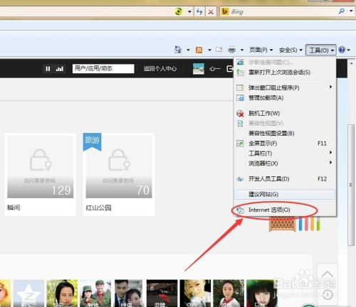 单击internet选项,弹出设置对话框