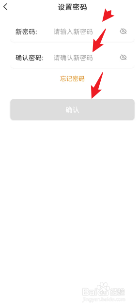 进入到设置密码界面,输入两次密码后,点击确认按钮即可。